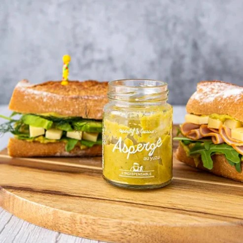 Découvrez l'Asperge au Yuzu de la Conserverie Rue Traversette: l'élégance végétale. Une création raffinée qui marie la finesse de l'asperge à la fraicheur acidulée du Yuzu