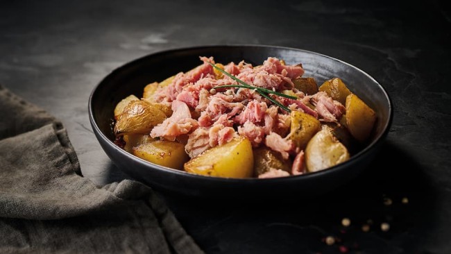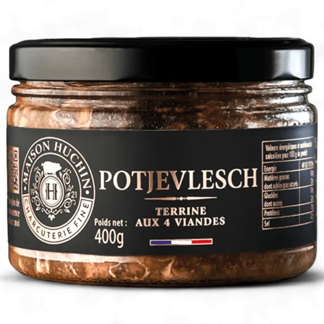 Ce Potjevlesch de la Maison Huchin est une véritable spécialité régionale, il est recommandé de le mettre au frais une heure avant la dégustation avec des frites et de la salade.